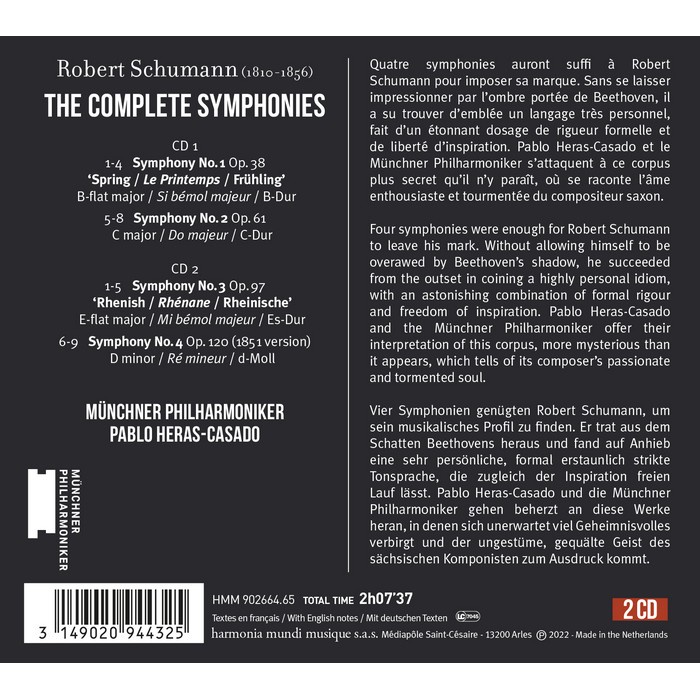 舒曼 交響曲全集 卡薩多 慕尼黑愛樂 Schumann Complete Symphonies HMM90266465