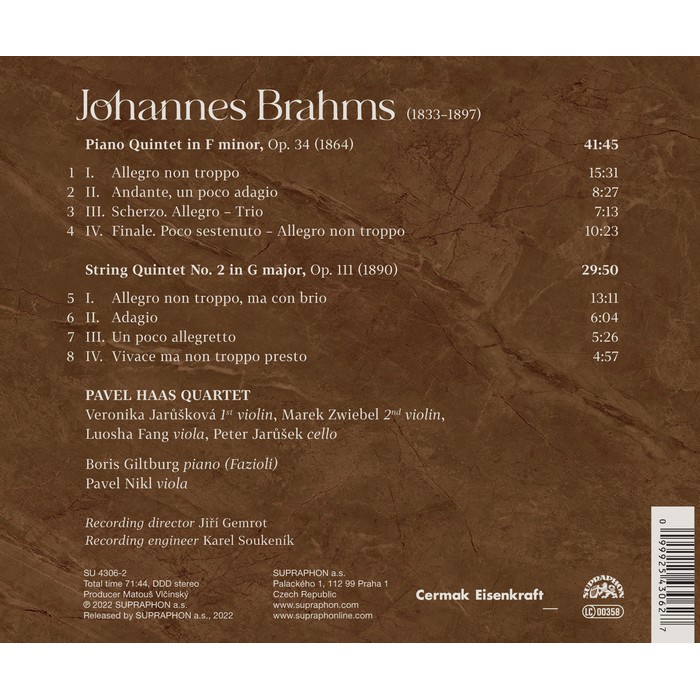 布拉姆斯 鋼琴五重奏 Pavel Haas Quartet Brahms Piano Quintet SU4306