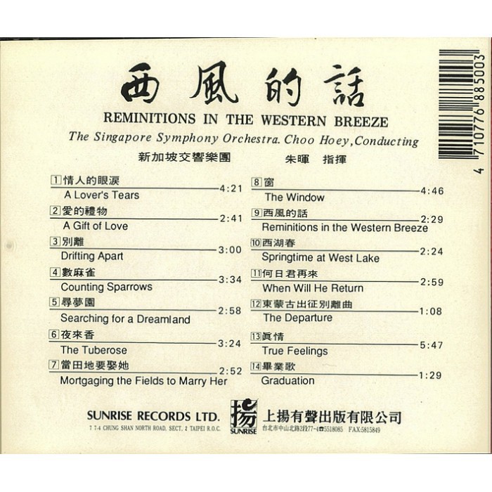 (上揚) 西風的話 Reminitions in the Western Breeze 8500