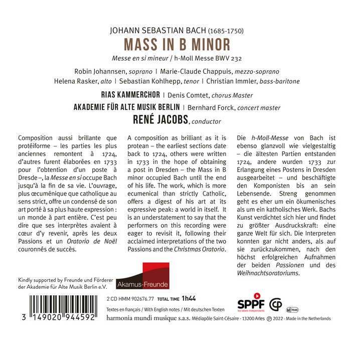 巴哈 b小調彌撒曲 雅克伯斯 柏林古樂學會樂團 Bach Mass in B minor HMM90267677
