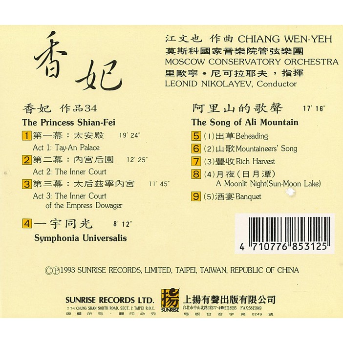 (上揚) 江文也 香妃 The Princess Shian Fei 8531