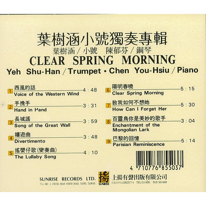 (上揚) 葉樹涵小號獨奏專輯 Clear Spring Morning 85503