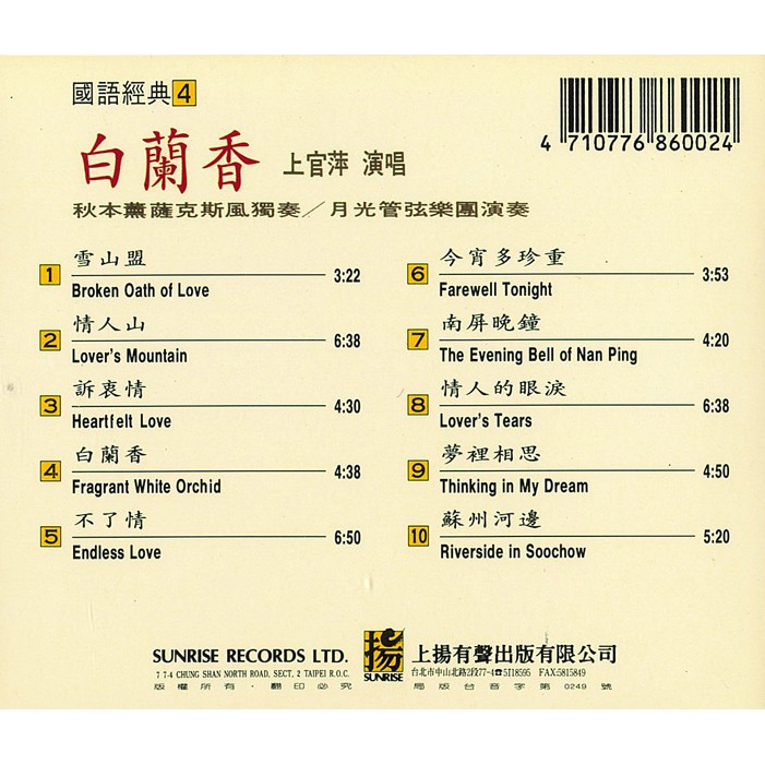 (上揚) 上官萍 白蘭香 Fragrant White Orchid 8600