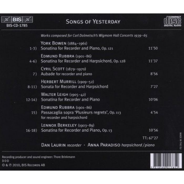 (BIS) 丹 羅林 昨日之歌 當代直笛作品集 Dan Laurin CD1785
