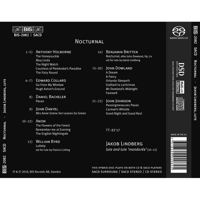 (BIS) 雅克伯 林柏格 夜曲 從道蘭到布列頓的魯特琴音樂 Nocturnal SACD2082