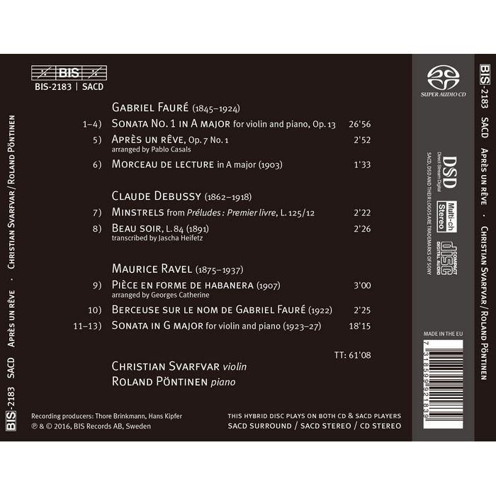 (BIS) 克里斯提安 史發夫法 夢醒時分 法國小提琴作品集 SACD2183