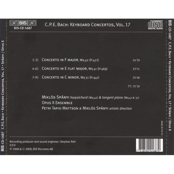 (BIS) CPE.巴哈 鍵盤協奏曲第17集 Spanyi CPE Bach CD1687
