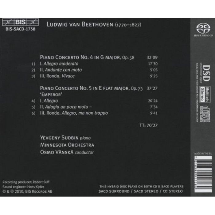 (BIS) 蘇德賓 貝多芬 第4號 5號鋼琴協奏曲 Sudbin Beethoven SACD1758