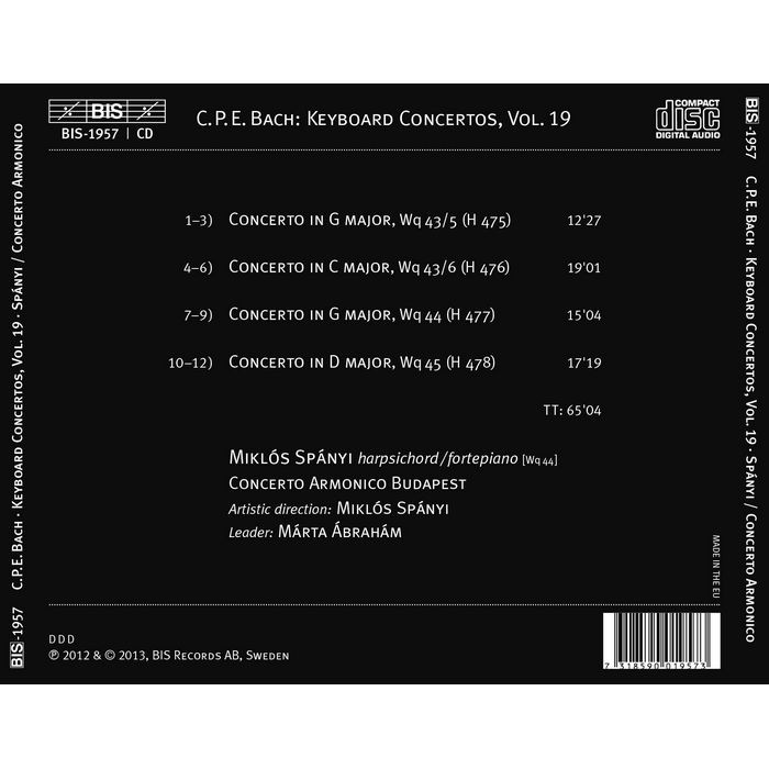 (BIS) CPE 巴哈 鍵盤協奏曲 第19集 CPE Bach CD1957