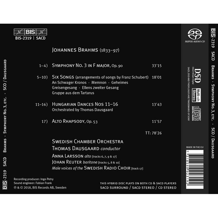 (BIS) 道斯葛 布拉姆斯 第3號交響曲 女低音狂想曲 Dausgaard Brahms SACD2319