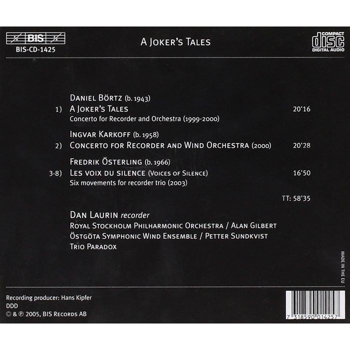 (BIS) 丹 羅林 丑角牌的故事 二十一世紀木笛音樂 Laurin A Jokers Tales CD1425