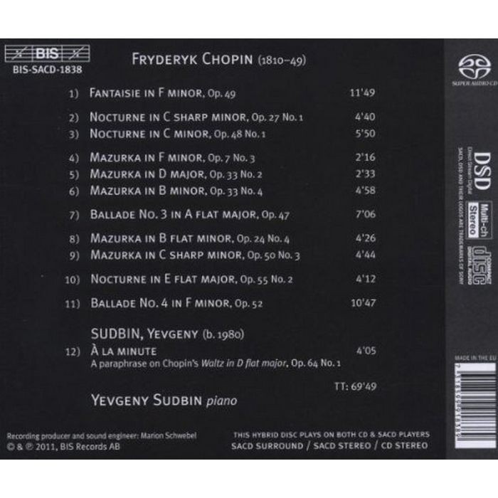 (BIS) 蘇德賓彈奏蕭邦 Yevgeny Sudbin Plays Chopin SACD1838