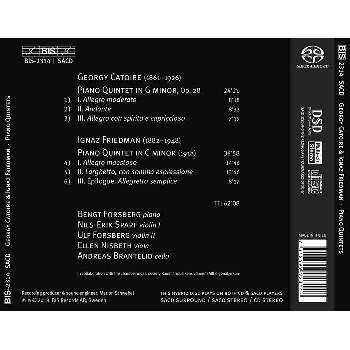 (BIS) 斯帕夫 卡托瓦 弗利德曼 鋼琴五重奏 Sparf Catoire Friedman SACD2314