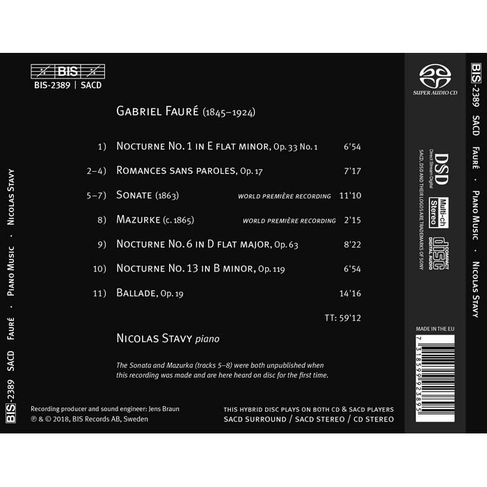 (BIS) 史塔維 佛瑞 鋼琴音樂 Nicolas Stavy Faure SACD2389
