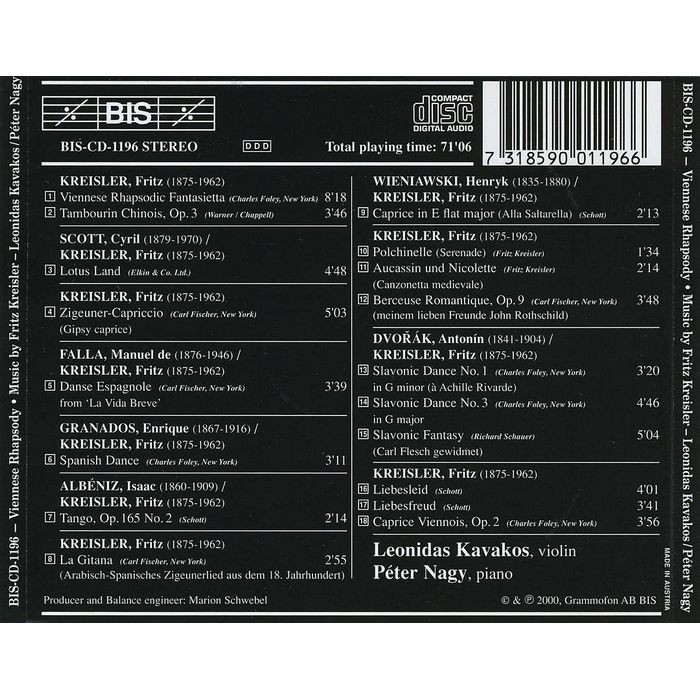 (BIS) 卡瓦柯斯 維也納狂想 克萊斯勒作品與改編曲集 Kavakos CD1196