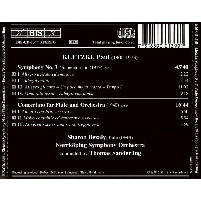 (BIS) 貝札莉 克雷茲基 第3號交響曲 長笛協奏曲 Bezaly Kletzki CD1399