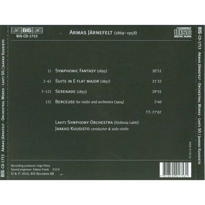 (BIS) 亞尼菲爾特 管弦作品 Armas Jarnefelt Orchestral Works CD1753