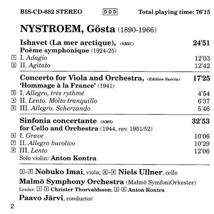 (BIS) 今井信子 尼斯特隆姆 中提琴協奏曲 Imai Nystroem Viola Concerto CD0682