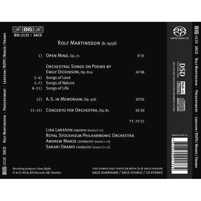 (BIS) 拉森 馬丁頌 (預感) Larsson Martinsson Presentiment SACD2133
