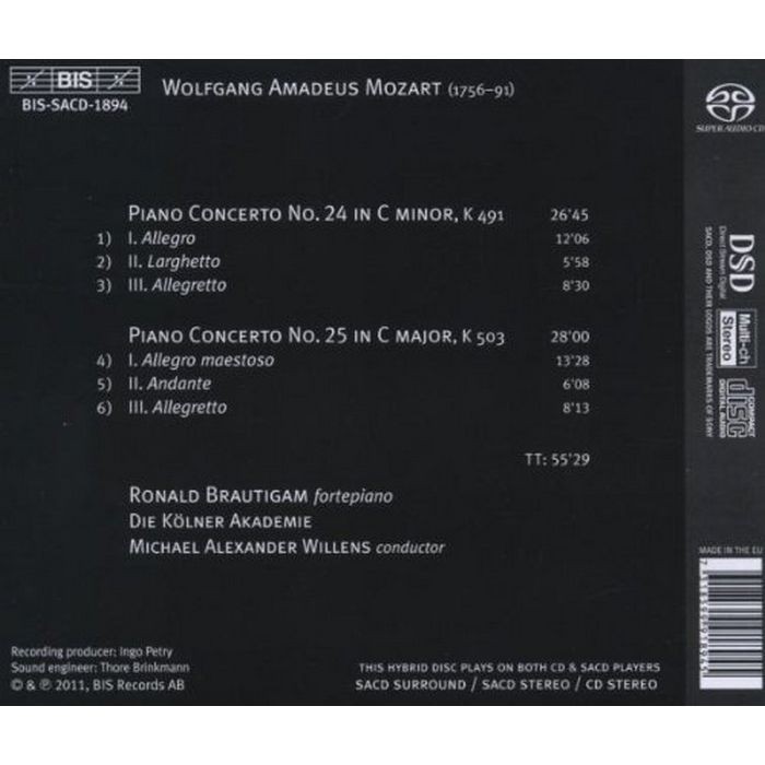 (BIS) 莫札特 第24號 25號鋼琴協奏曲 布勞提岡 Mozart Piano Concerto SACD1894