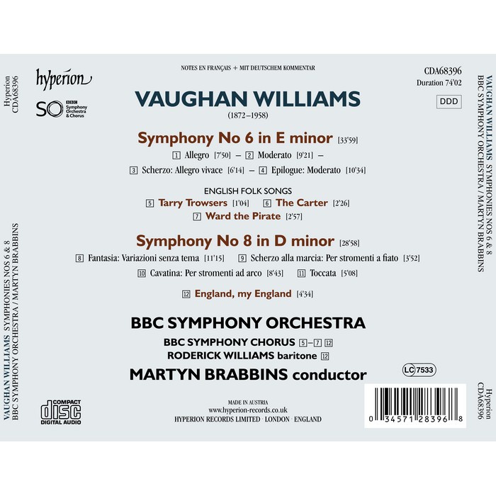 佛漢威廉士 第6 第8號交響曲 Williams Symphonies No 6 and 8 CDA68396