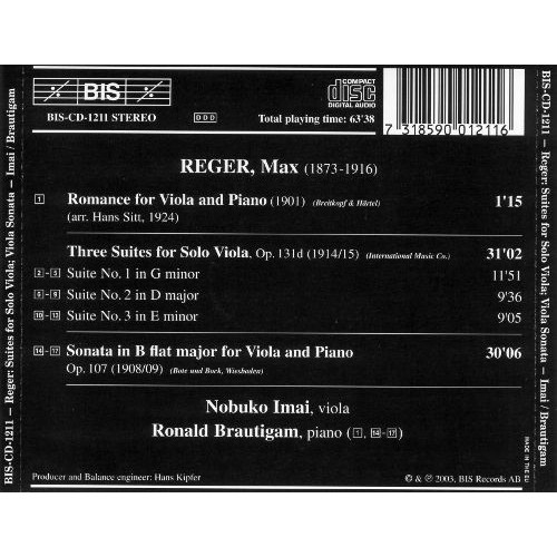 (BIS) 今井信子 雷格 中提琴作品 Nobuko Imai Reger Music for viola CD1211