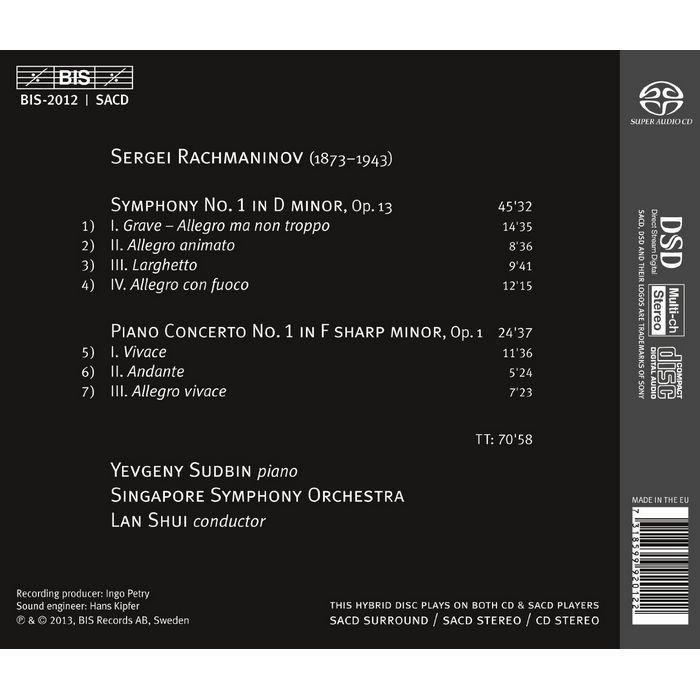 (BIS) 蘇德賓 拉赫曼尼諾夫第2號交響曲 第1號鋼琴協奏曲 Sudbin Rachmaninov SACD2012