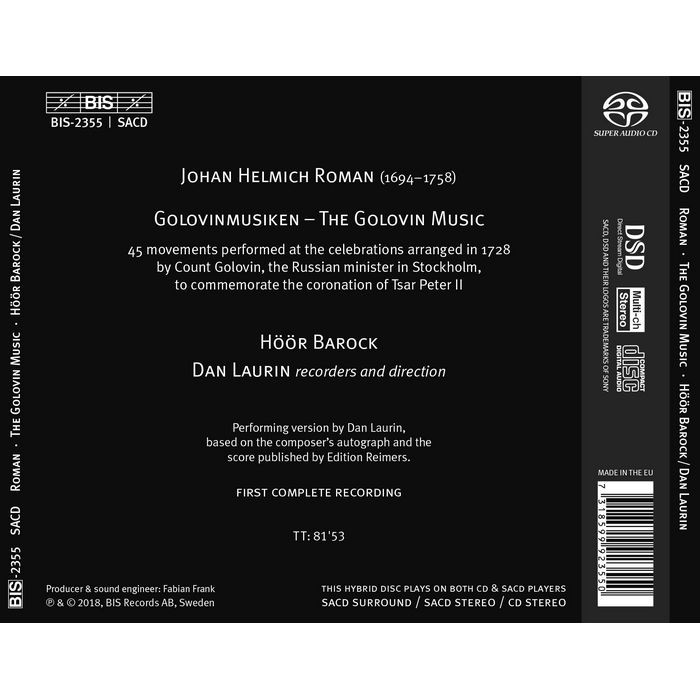 (BIS) 丹羅林 羅曼 葛羅芬音樂(首次完整錄製羅曼的宴會音樂) JH Roman SACD2355