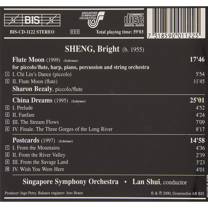 (BIS) 貝札莉 盛宗亮 管弦樂曲(中國夢) 月笛 明信片 Bezaly Bright Sheng CD1122