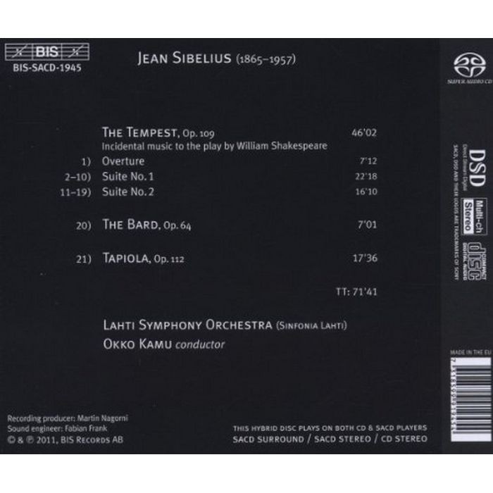 (BIS) 西貝流士 暴風雨序曲及組曲 Sibelius The Tempest The Bard SACD1945