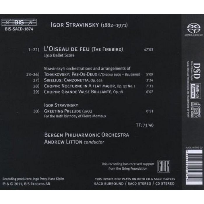 (BIS) 利頓 史特拉文斯基 火鳥 柴可夫斯基 蕭邦改編曲 Litton Stravinsky SACD1874