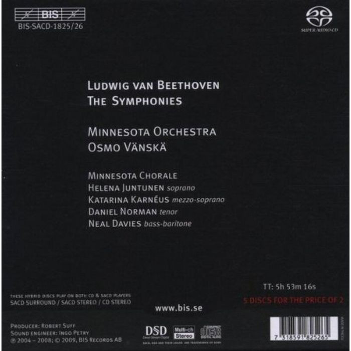 (BIS) 凡斯卡 貝多芬 交響曲全集 Osmo Vanska Beethoven SACD1825 26
