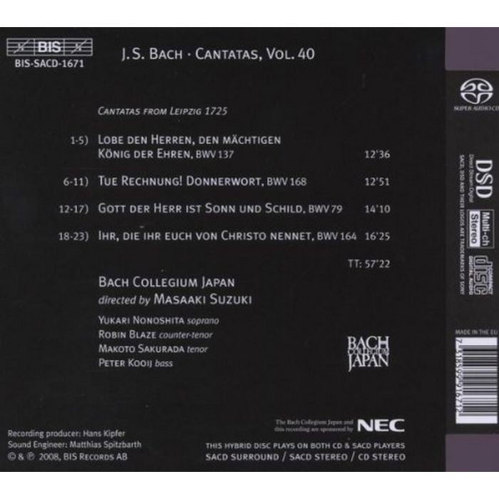 (BIS) 鈴木雅明 巴哈清唱劇第40集 Suzuki Bach SACD1671