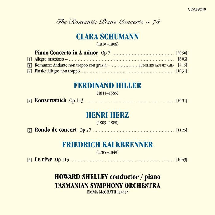 浪漫鋼琴協奏曲78集 克拉拉 舒曼 薛利 Shelley Clara Schumann CDA68240
