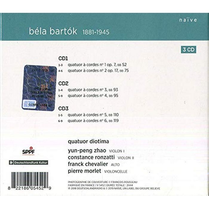 迪歐提瑪四重奏 巴爾托克弦樂四重奏全集 Quatuor Diotima Bartok V5452