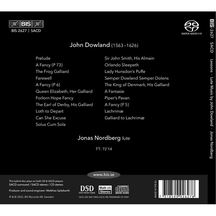 約翰 道蘭的魯特琴音樂課程 Lessons Lute Music by John Dowland SACD2627