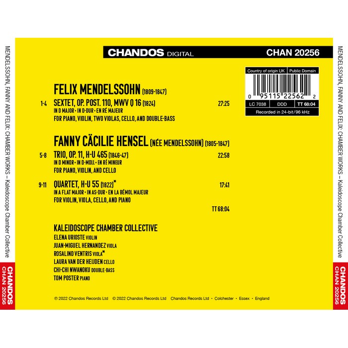 芳妮 菲利克斯 孟德爾頌 室內樂集 Mendelssohn Chamber Works CHAN20256