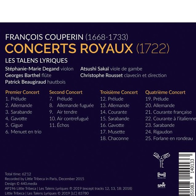 庫普蘭 皇家音樂會 抒情天才古樂團 Rousset Les Talens Lyriques Couperin AP196