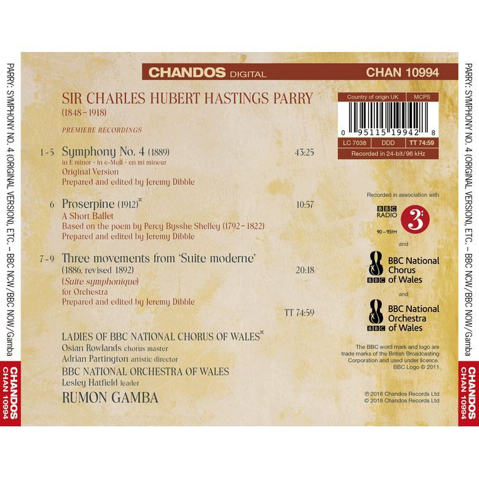 帕瑞 第四號交響曲 甘巴 Rumon Gamba Parry Symphony No 4 CHAN10994