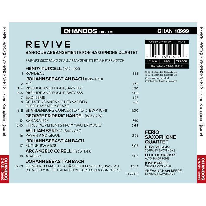 薩克斯風曲改編巴洛克名曲 Ferio Saxophone Quartet Revive CHAN10999