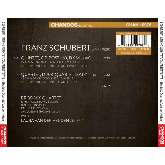 舒伯特 弦樂五重奏 四重奏 布羅茲基四重奏 Schubert String Quintet CHAN10978