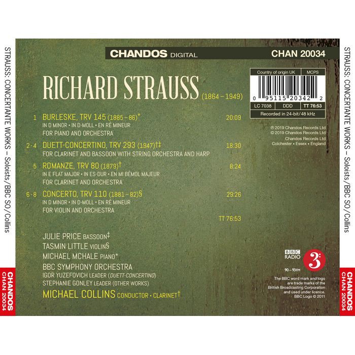 理查史特勞斯 協奏曲集 柯林斯 Collins Strauss Concertante Works CHAN20034