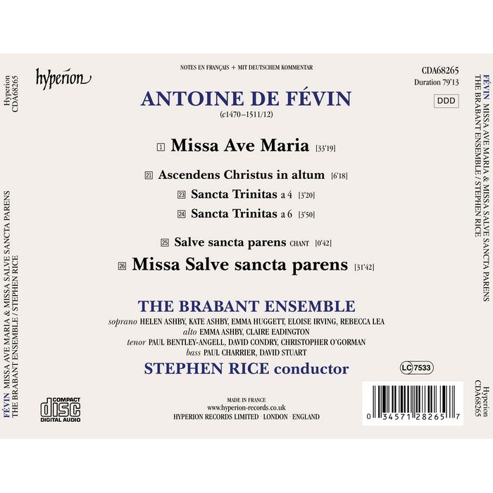 費瓦 聖母瑪利亞彌撒 布拉班特合唱團 Brabant Ensemble Fevin Ave Maria CDA68265