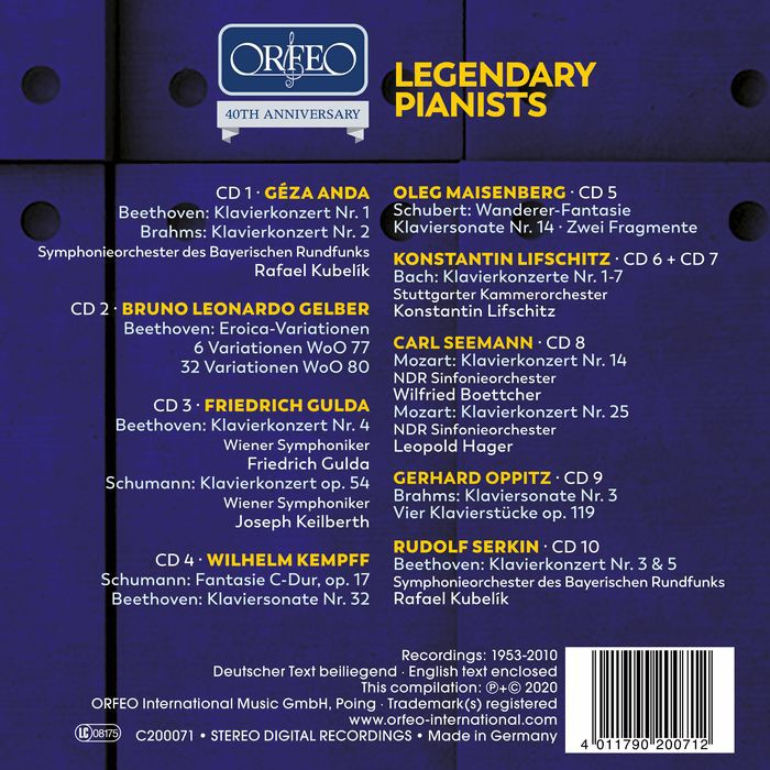 Orfeo 40週年紀念 傳奇名鋼琴家 Legendary Pianists C200071