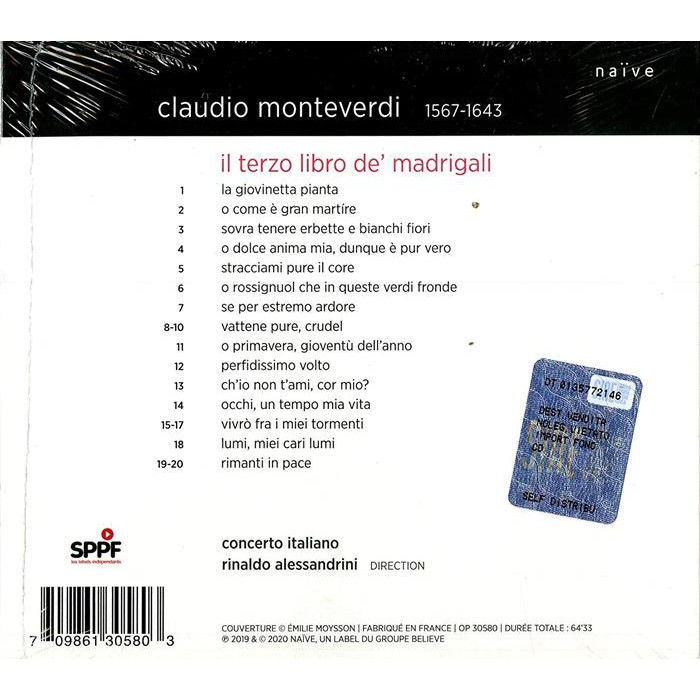 蒙台威爾第 牧歌第三冊 Monteverdi il terzo libro de madrigali OP30580