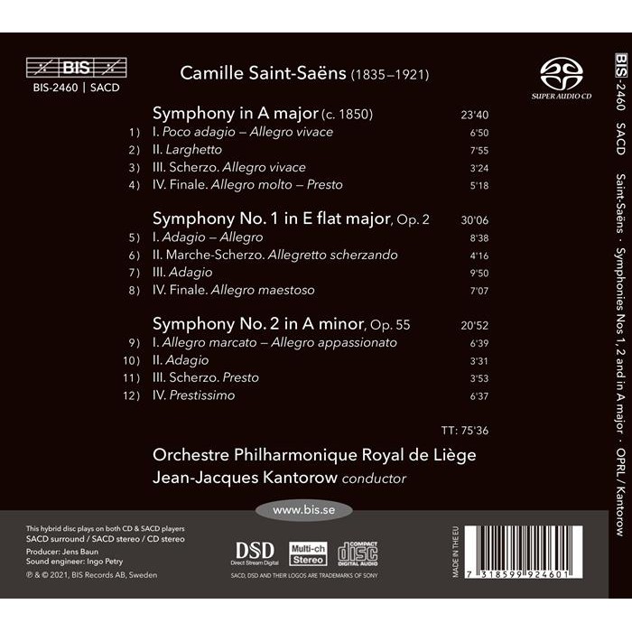 聖桑 A大調與第一 第二號交響曲 Saint Saens Symphonie Nos 1 and 2 SACD2460