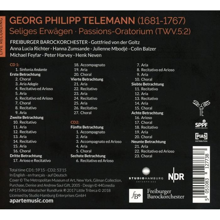 泰勒曼幸福的沉思 佛萊堡巴洛克樂團 Freiburger Barockorchester Telemann AP175