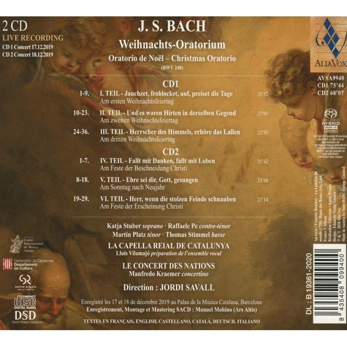 巴哈 聖誕神劇 沙瓦爾 Jordi Savall Bach Weihnachts Oratorium AVSA9940