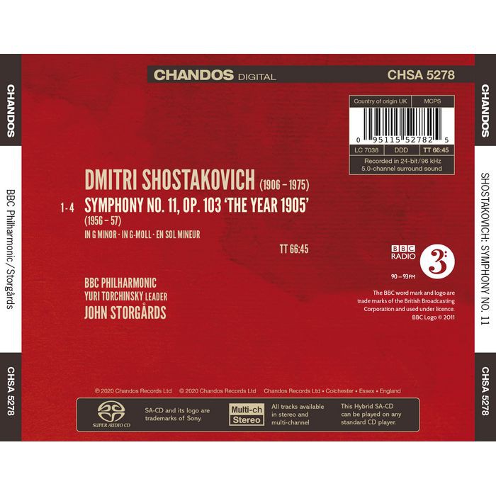 蕭士塔高維契 第11號交響曲 Shostakovich Symphony No 11 CHSA5278