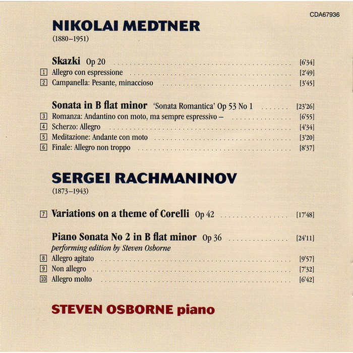 梅特納 拉赫曼尼諾夫 鋼琴奏鳴曲 奧斯朋 Medtner Rachmaninov Sonatas CDA67936